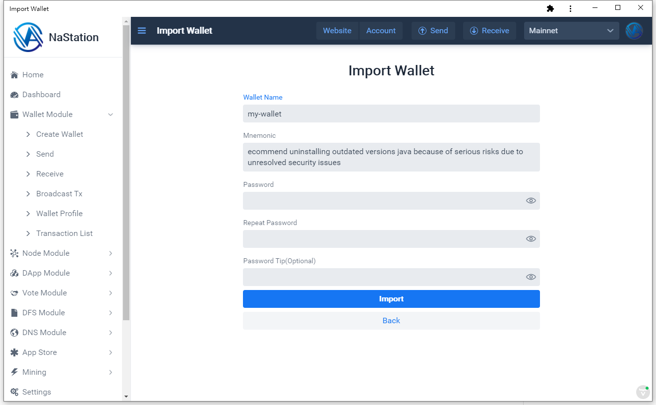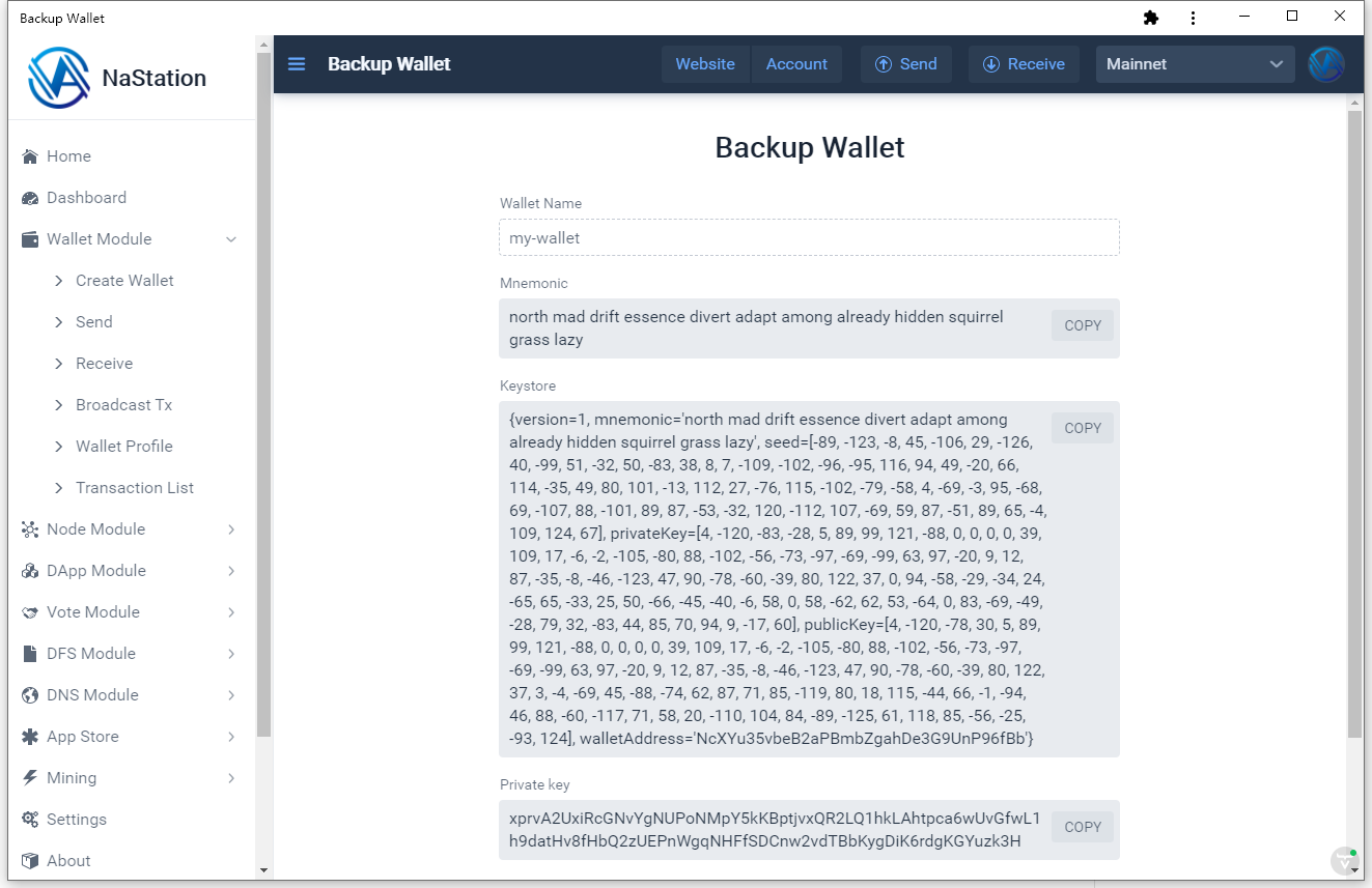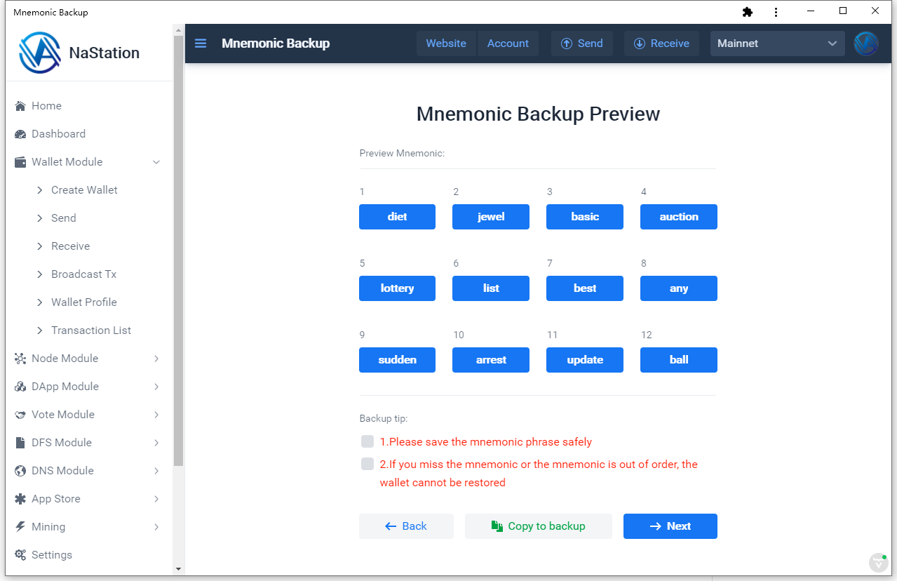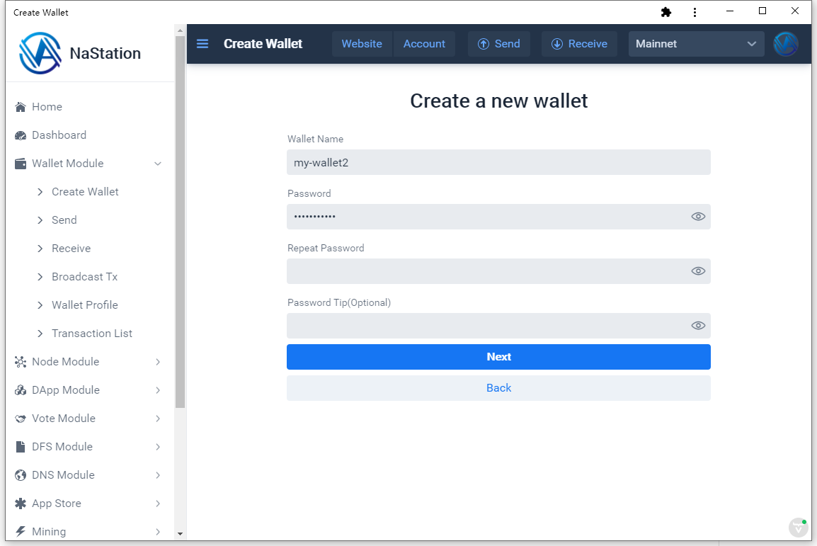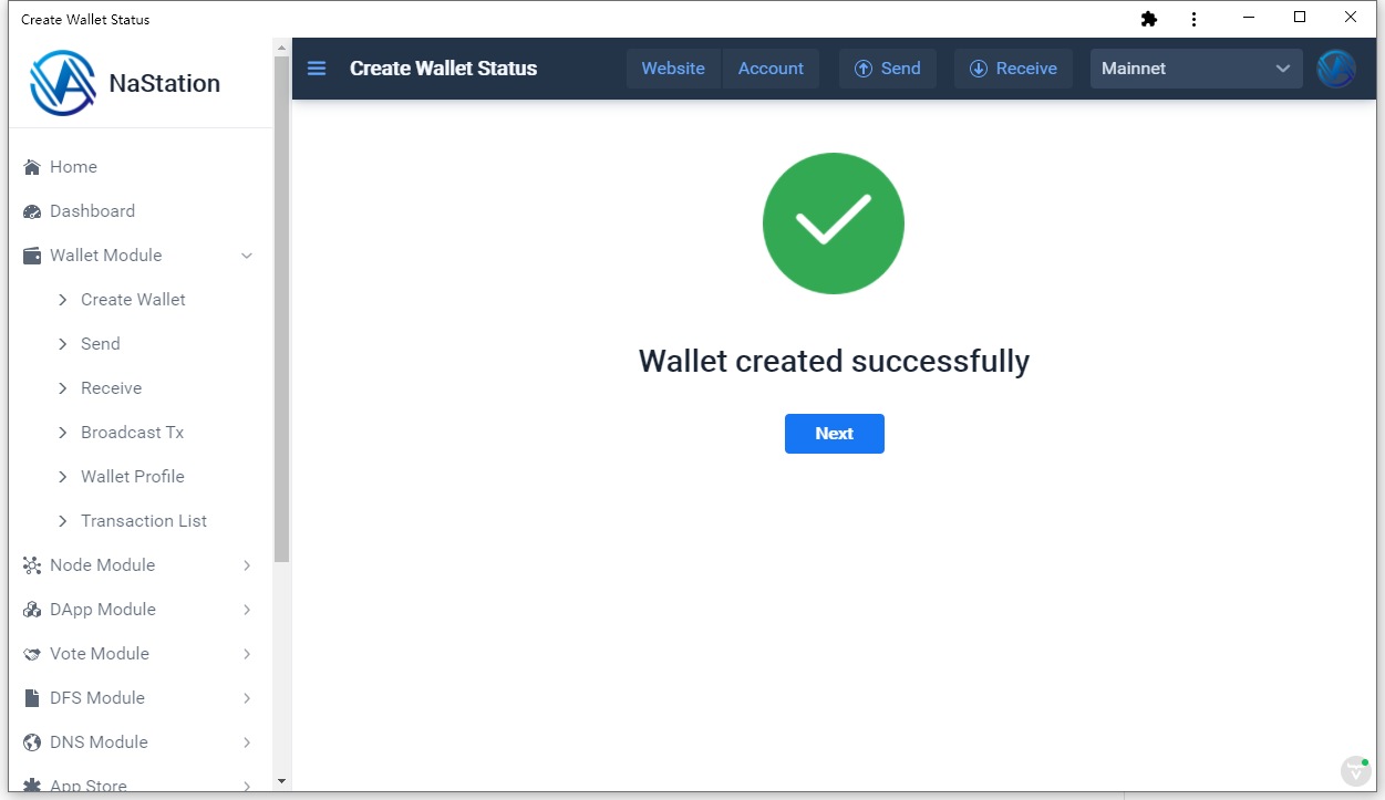 - The wallet is created successfully, the system will record your wallet basic information, but does not contain mnemonic words and passwords